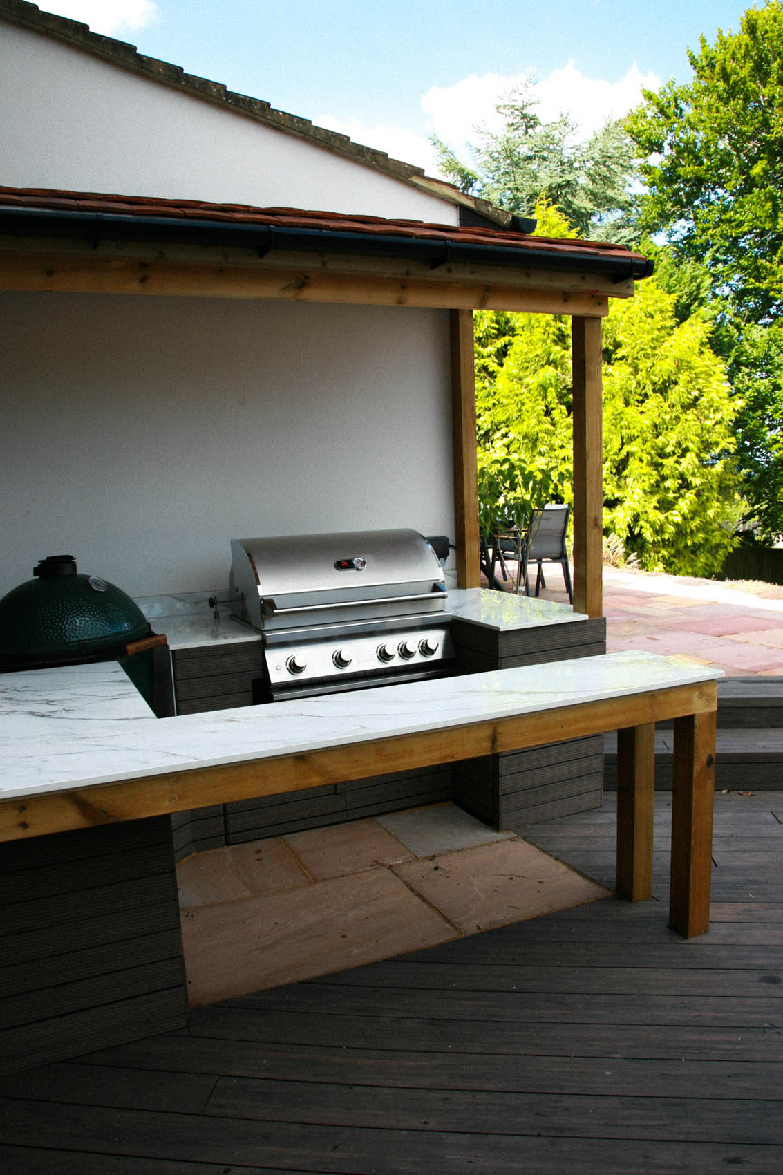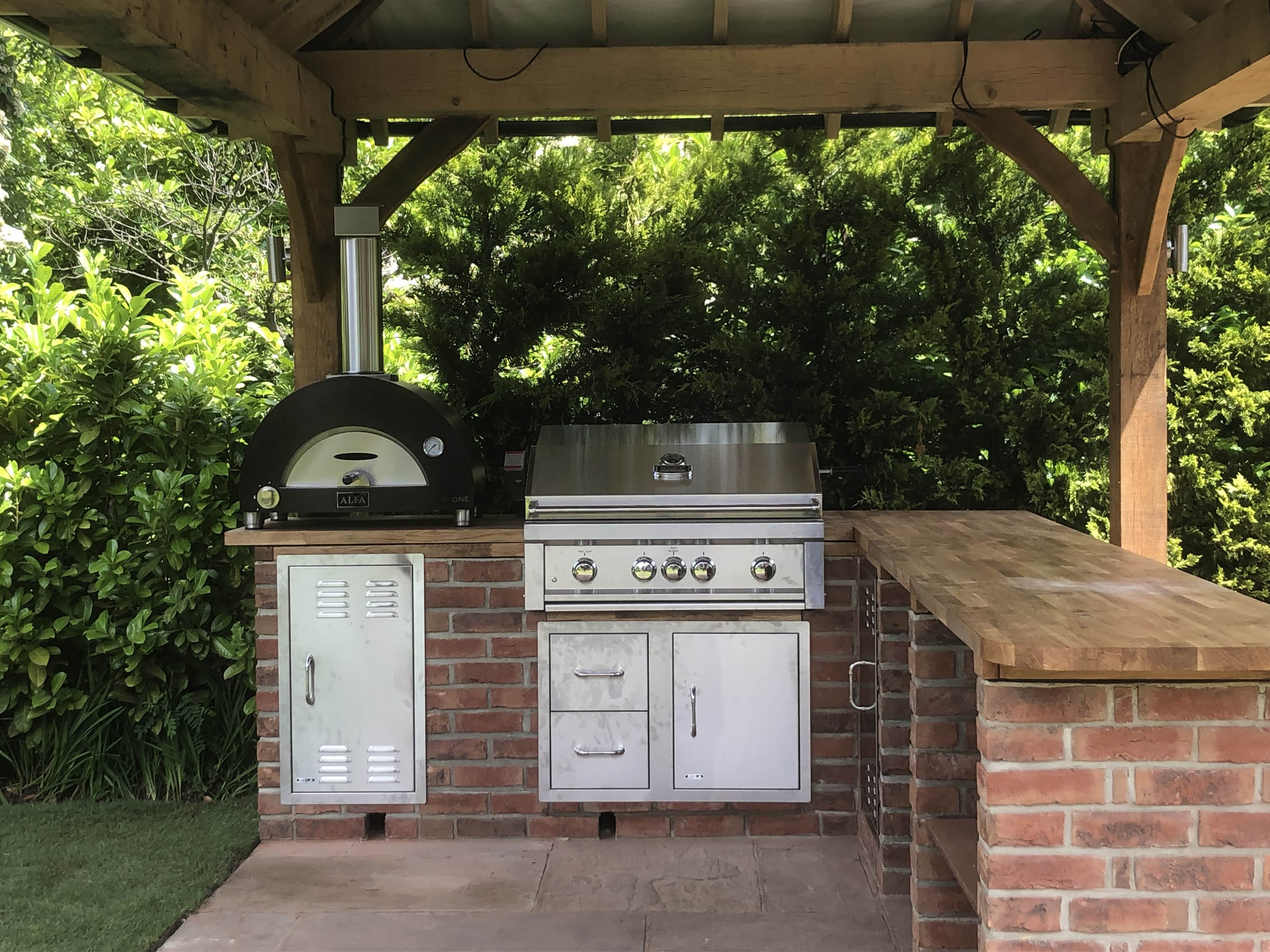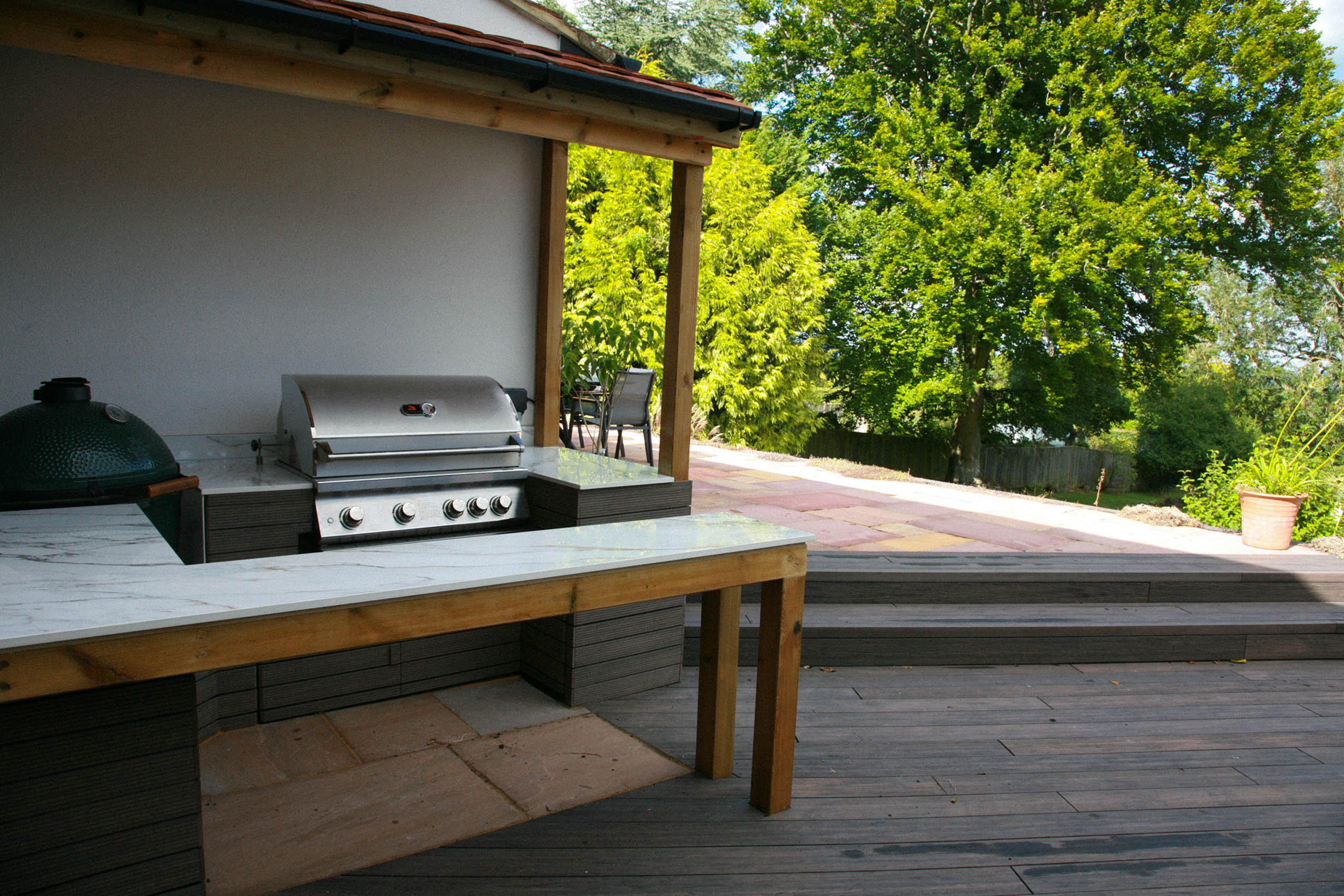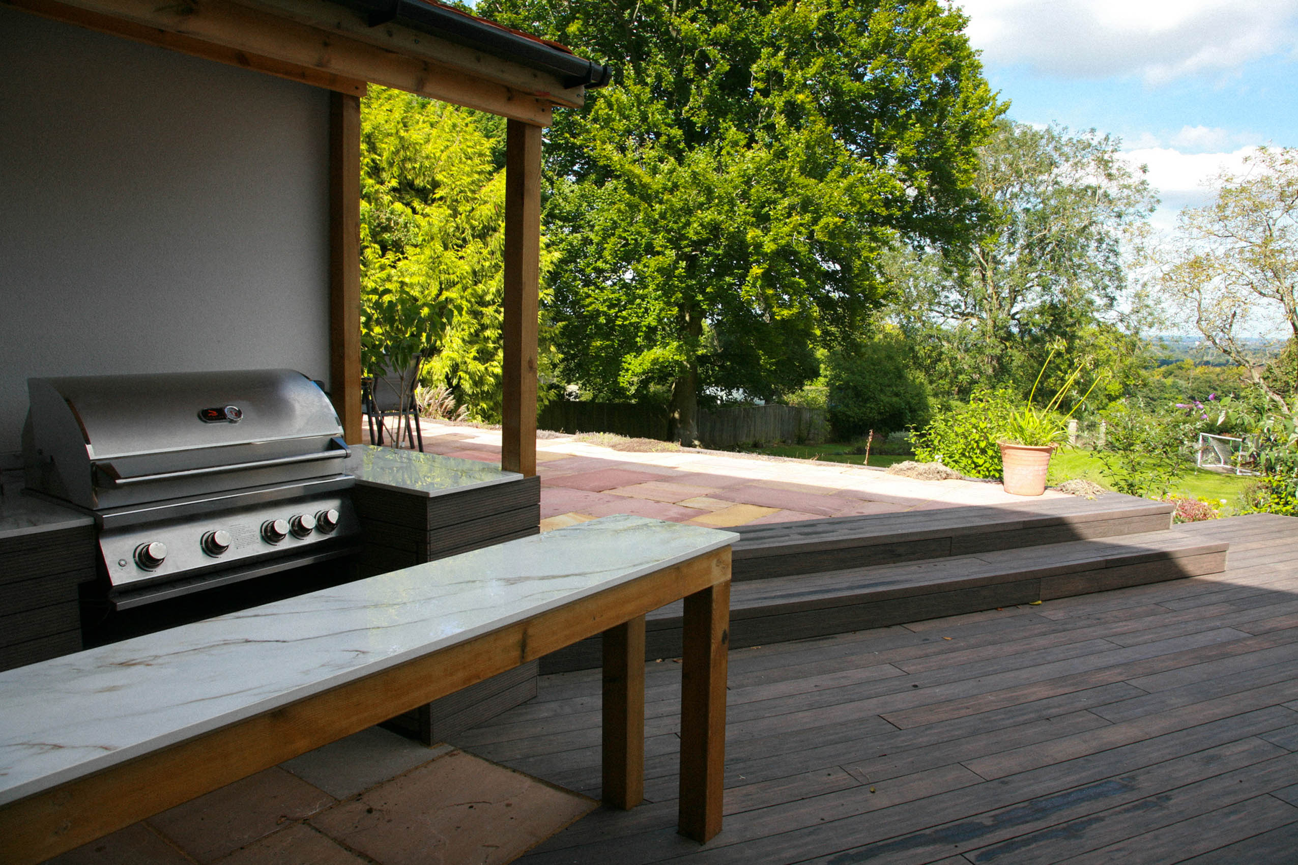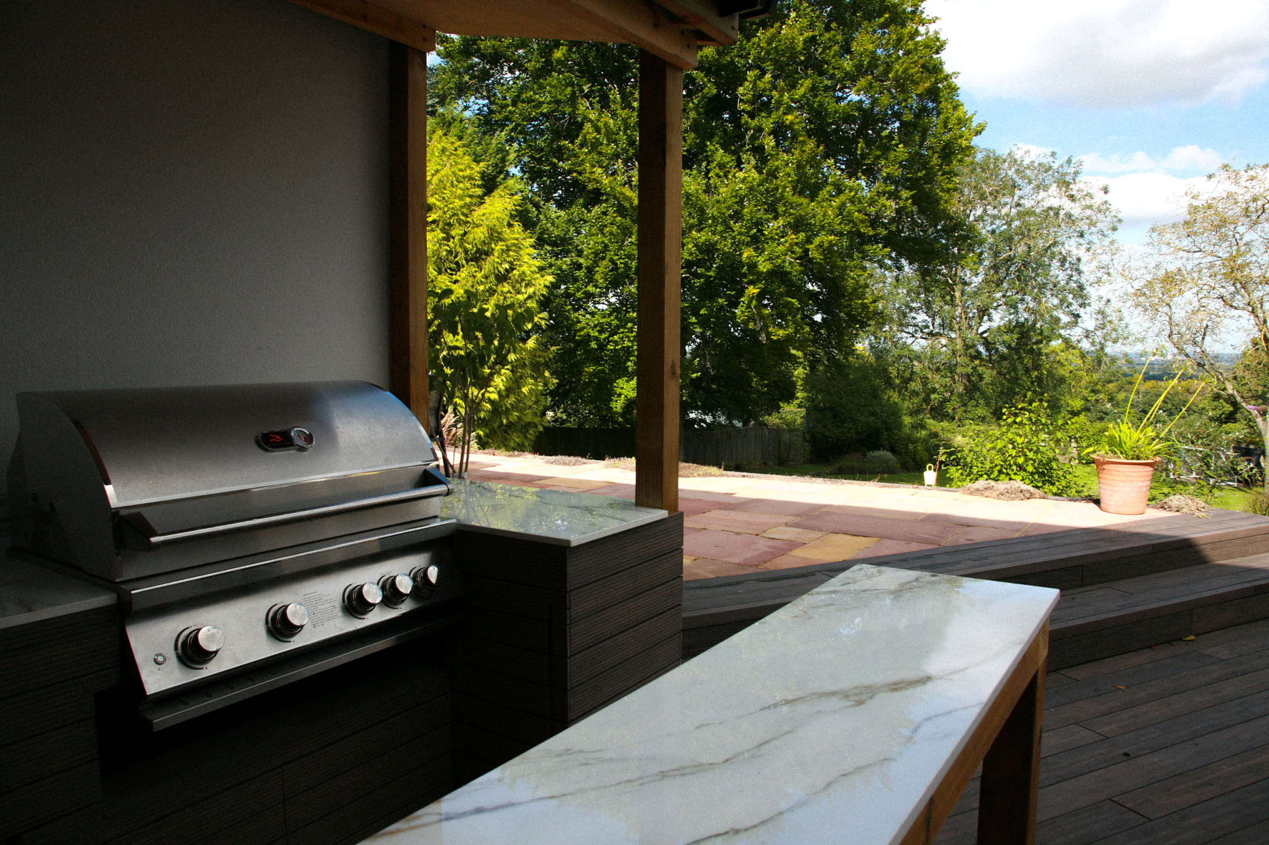 Please explore our gallery of bespoke outdoor kitchens and BBQ areas, showcasing a range of styles, materials, and finishes to inspire your own beautifully crafted outdoor living space.