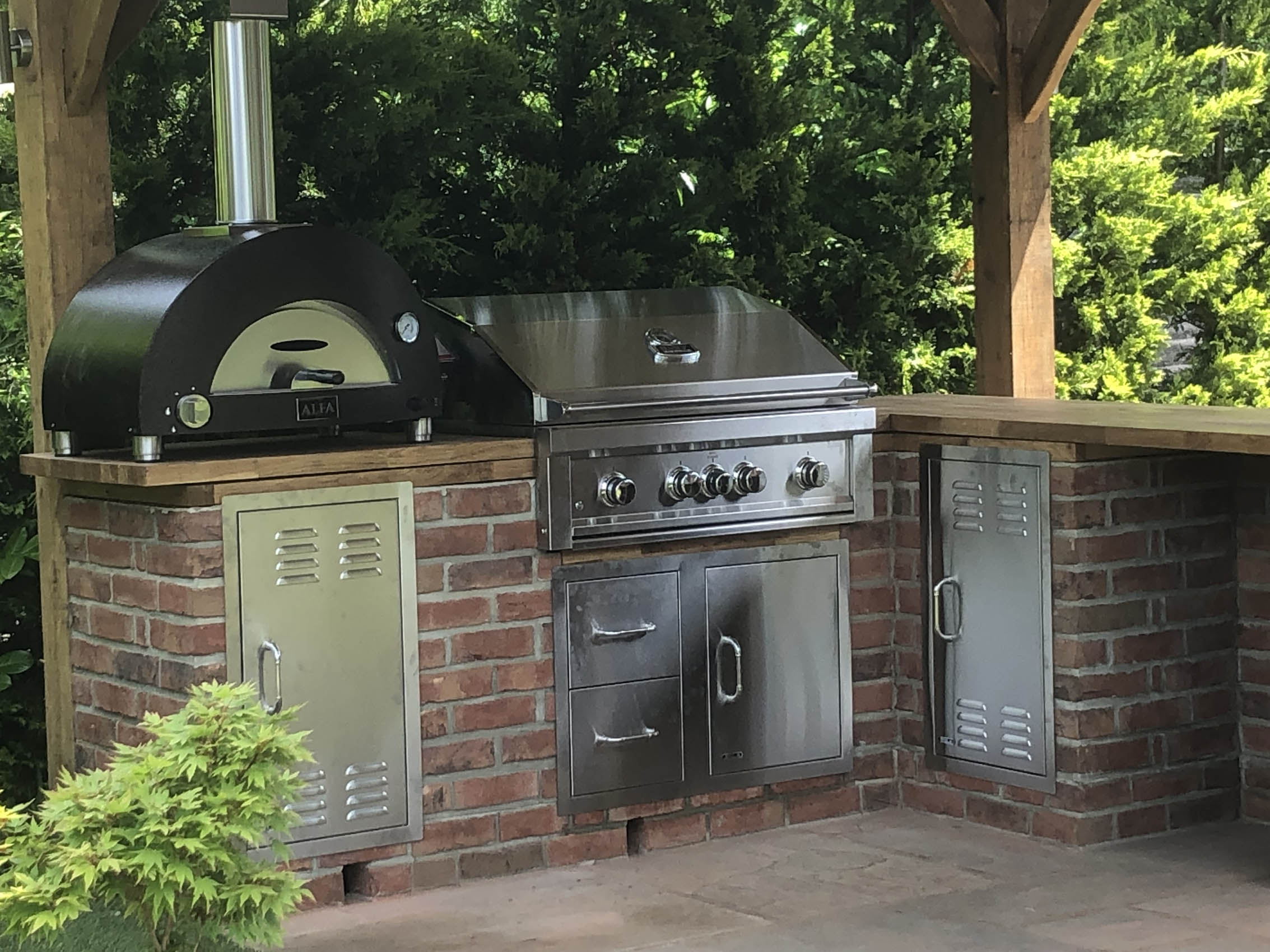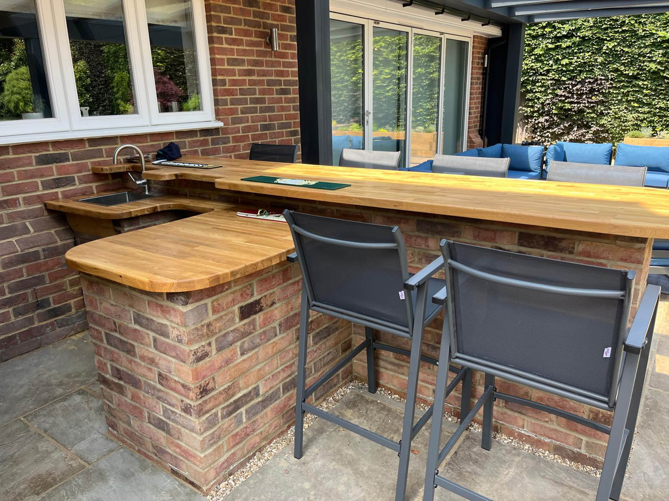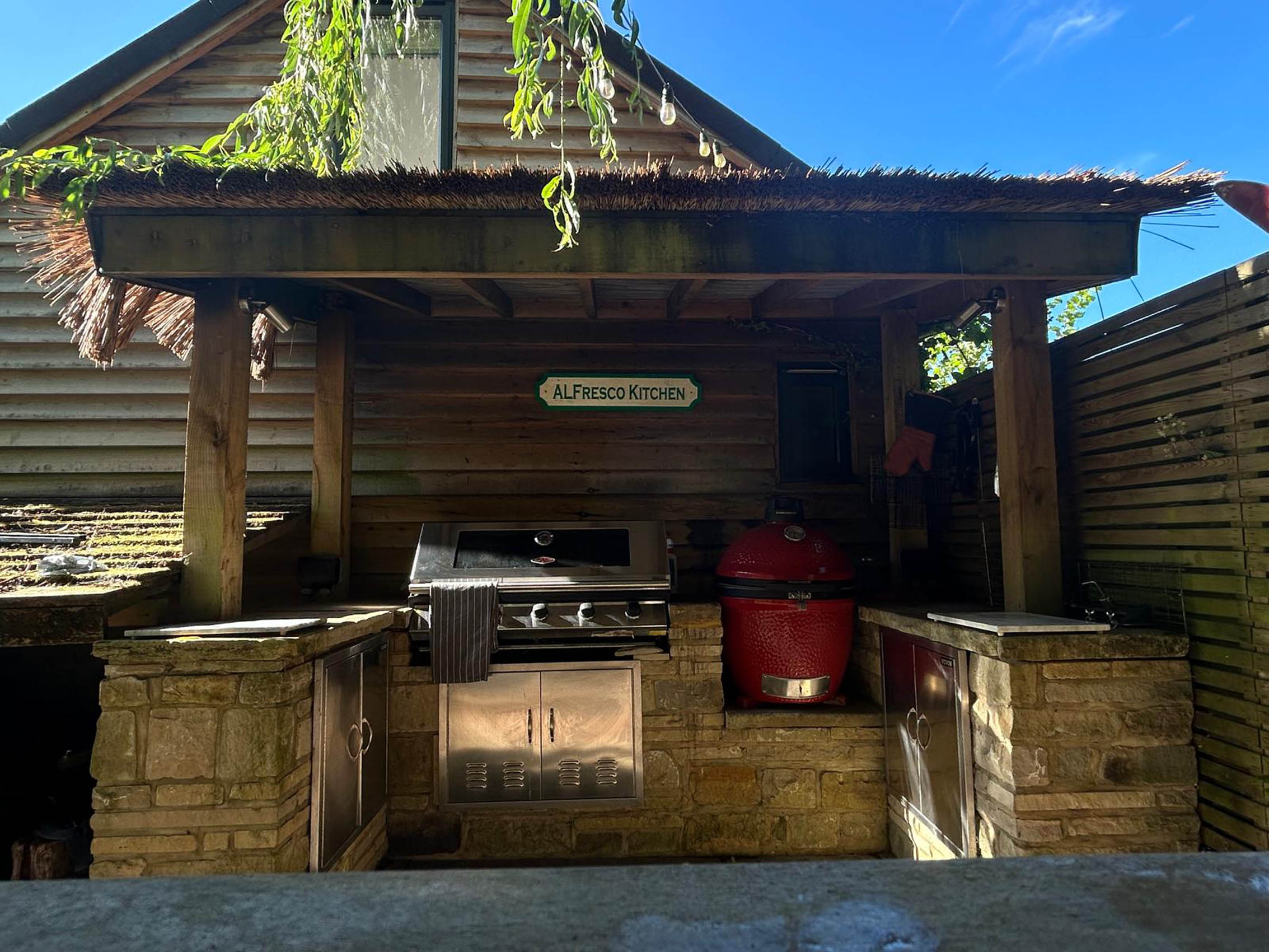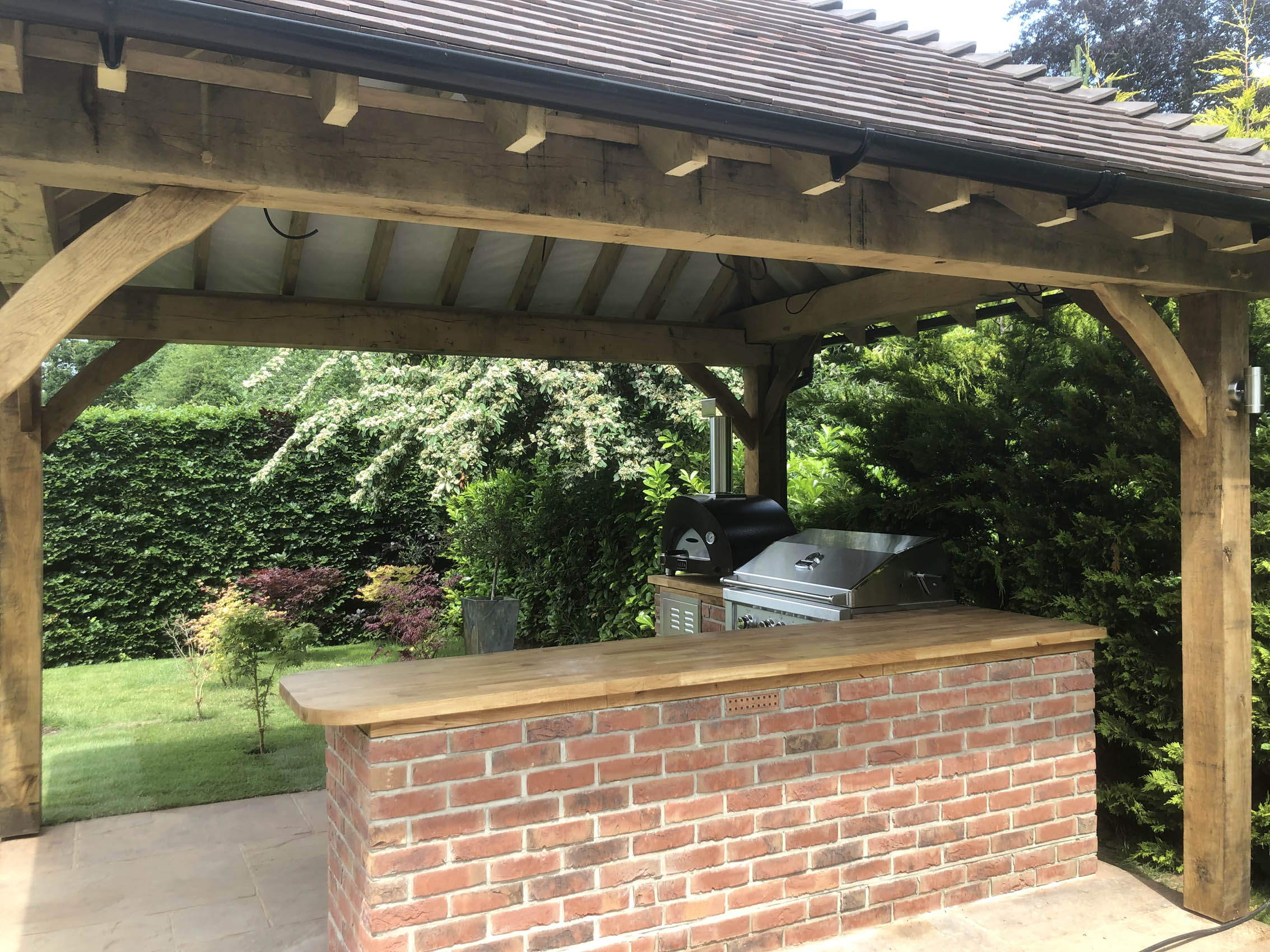 Please explore our gallery of bespoke outdoor kitchens and BBQ areas, showcasing a range of styles, materials, and finishes to inspire your own beautifully crafted outdoor living space.