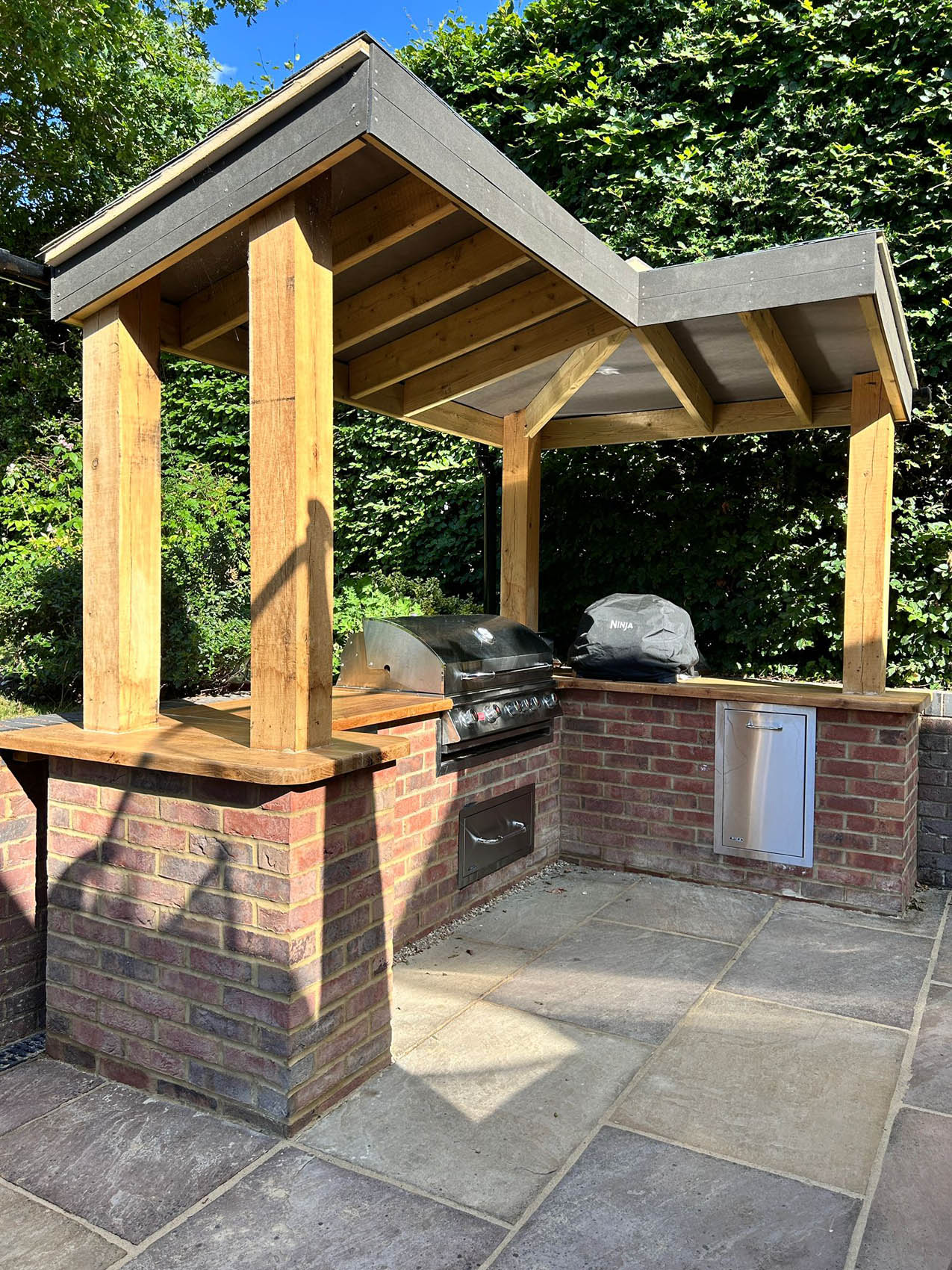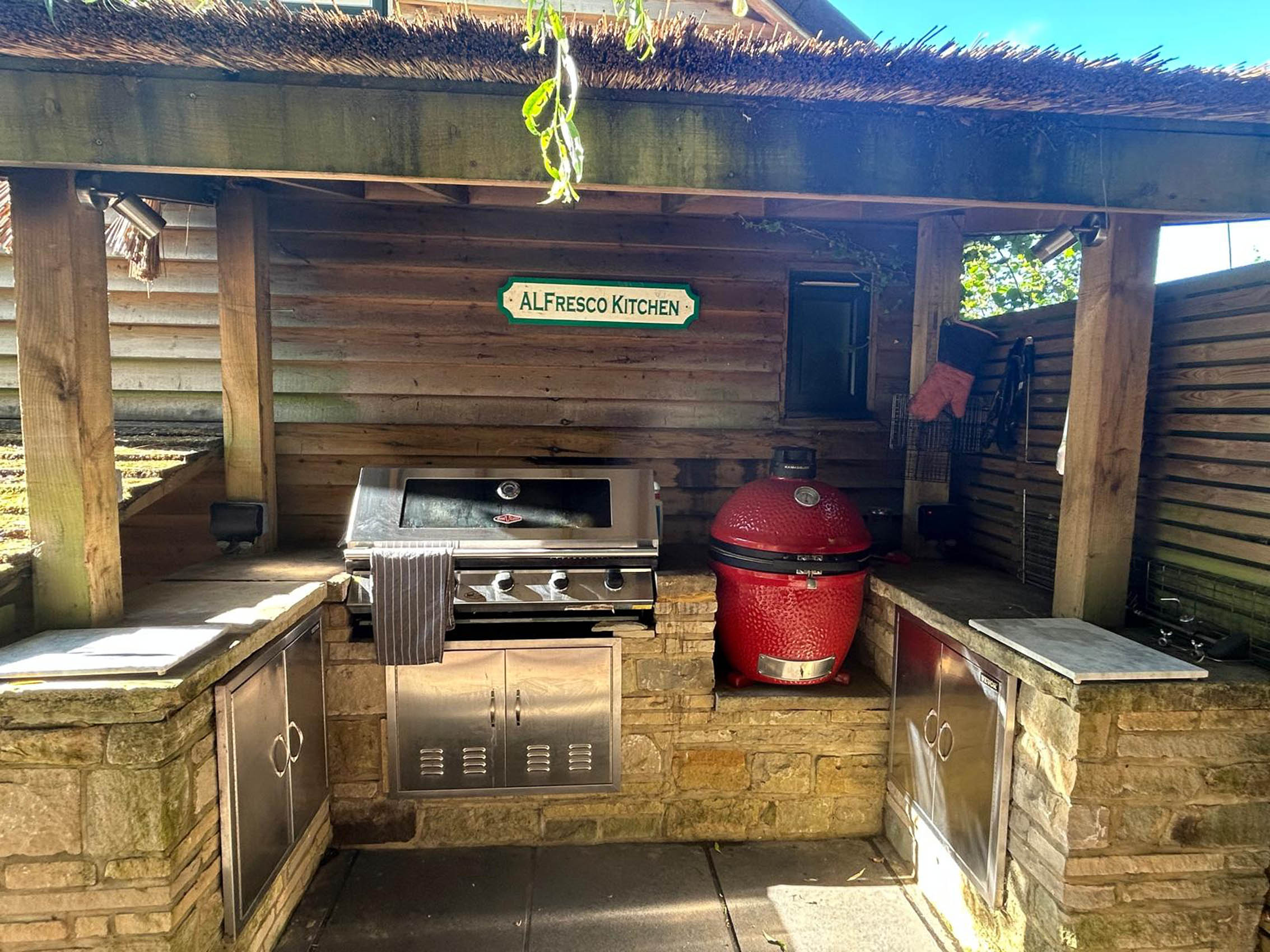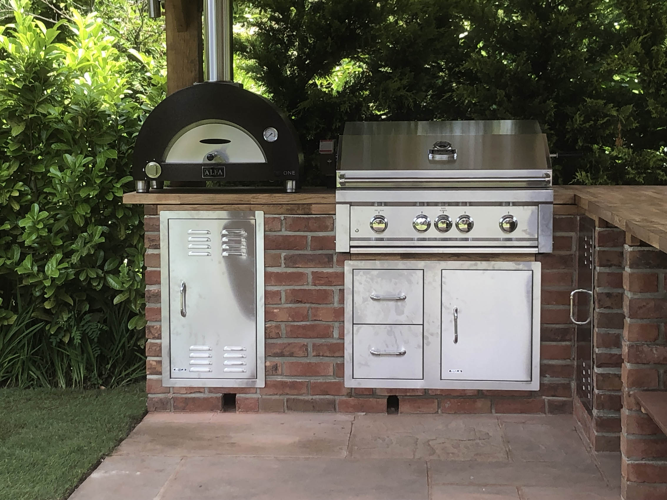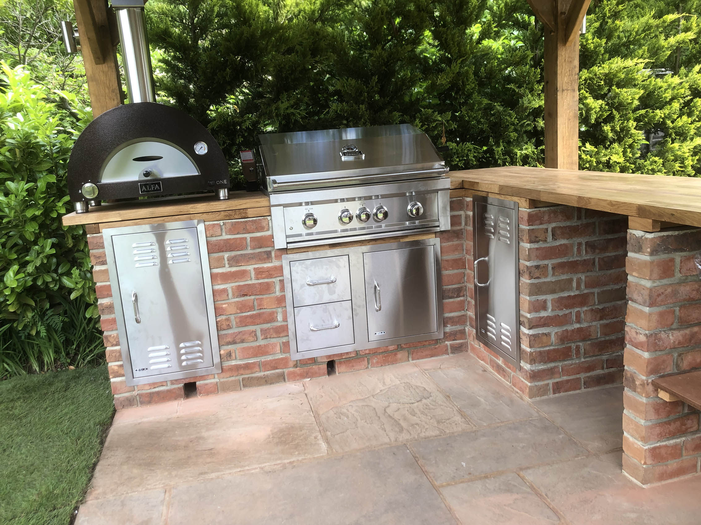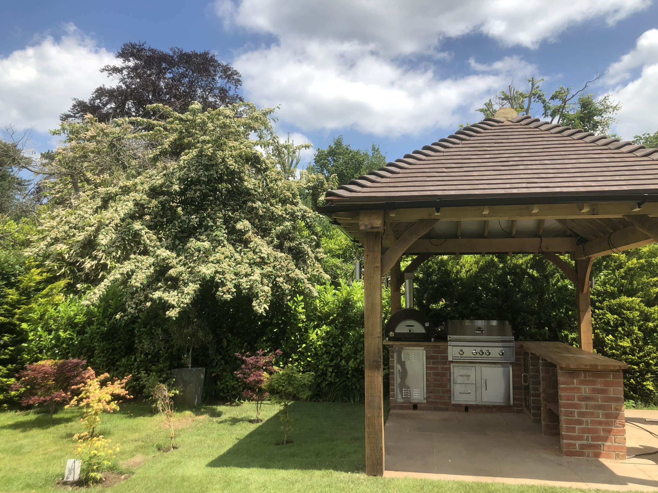 Please explore our gallery of bespoke outdoor kitchens and BBQ areas, showcasing a range of styles, materials, and finishes to inspire your own beautifully crafted outdoor living space.