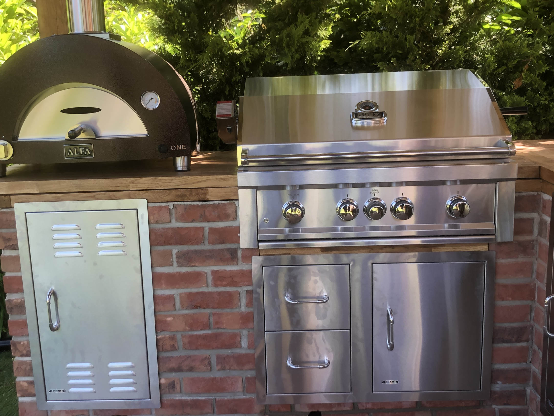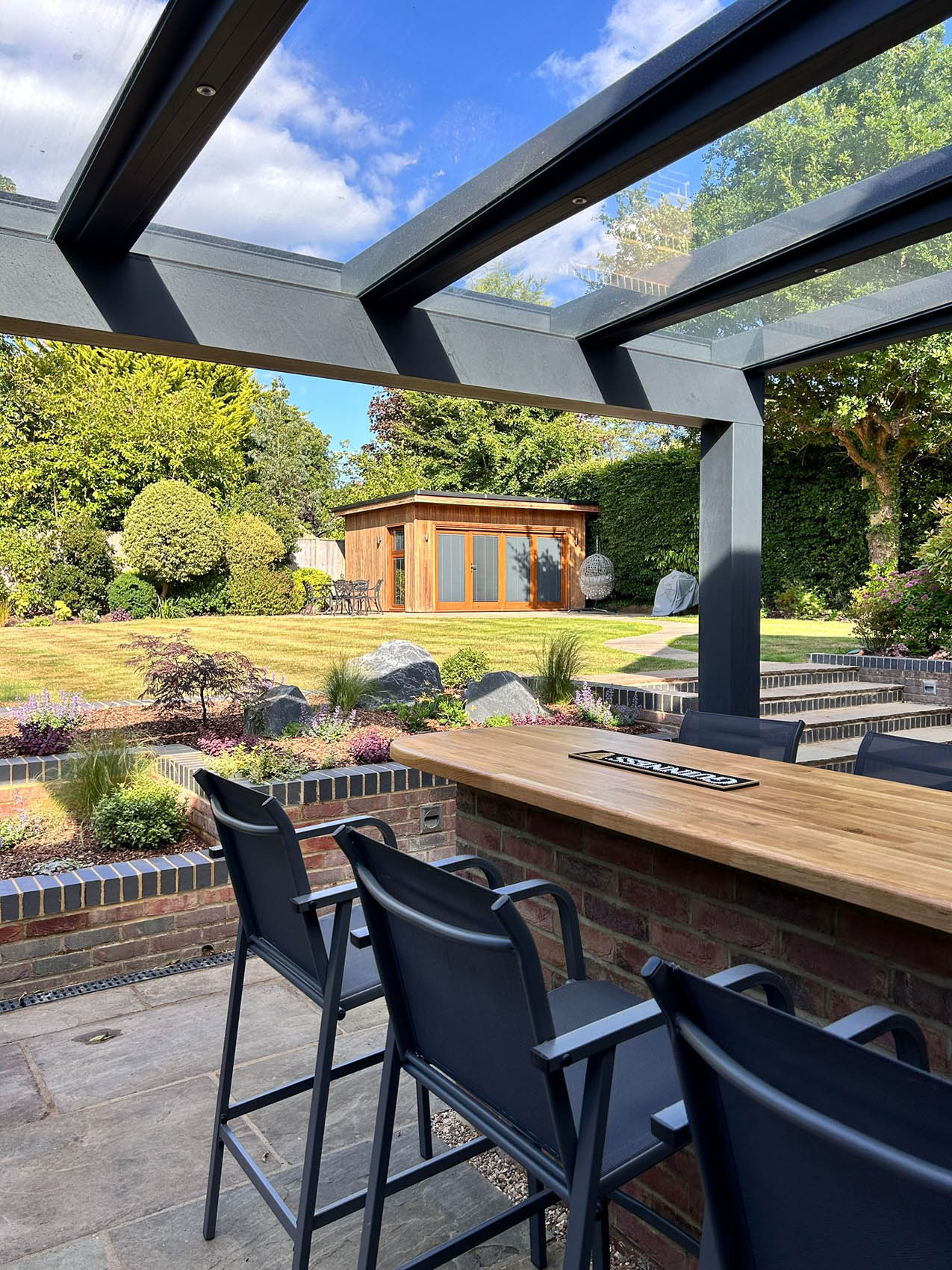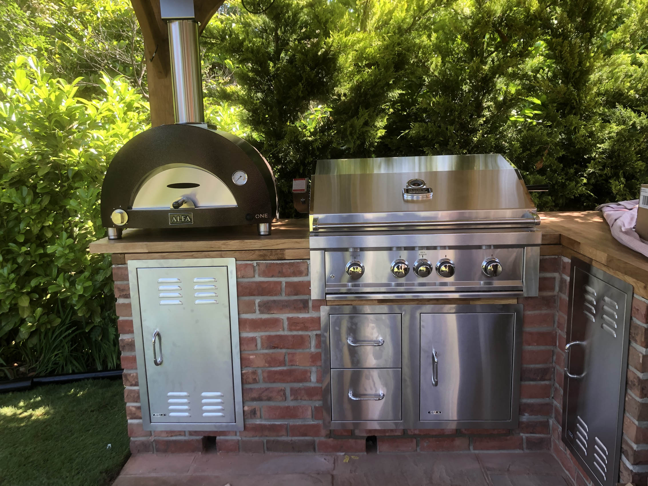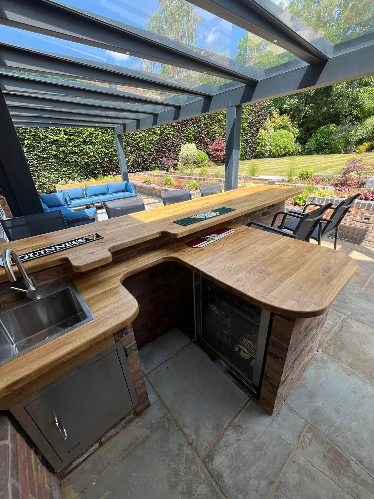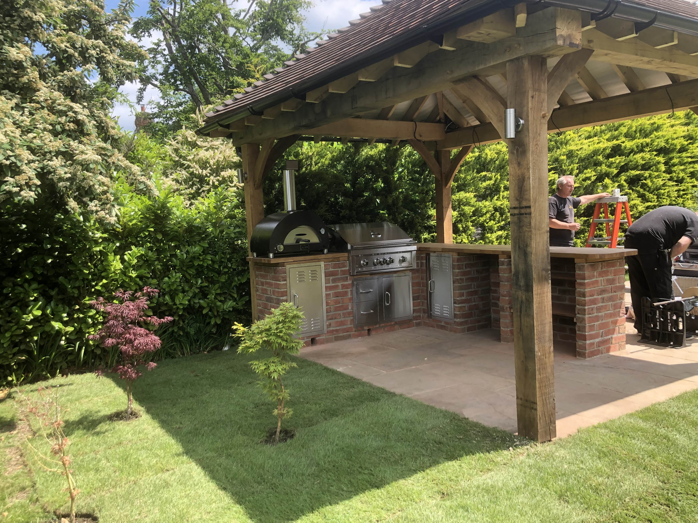 Please explore our gallery of bespoke outdoor kitchens and BBQ areas, showcasing a range of styles, materials, and finishes to inspire your own beautifully crafted outdoor living space.
